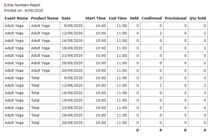 There is an extras numbers report available within GemaPark. You can select to run this for a specific event over a specific date to see what your capacity is.