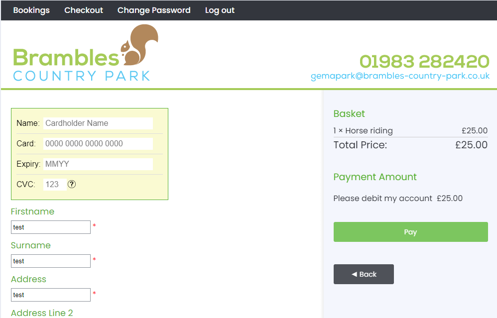 After adding the events to the basket, the simple checkout is then followed after clicking continue which just asks for the card payment details.