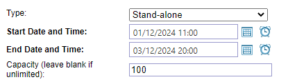 If the event is stand-alone you will be asked on this page to set the dates and capacity.