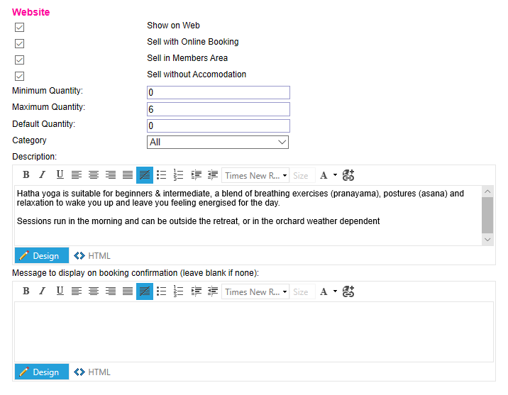 The rest of the extra set up is as per the normal set up however you want to make sure the options to book this online are correct: