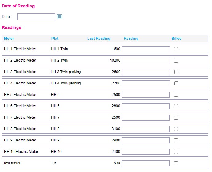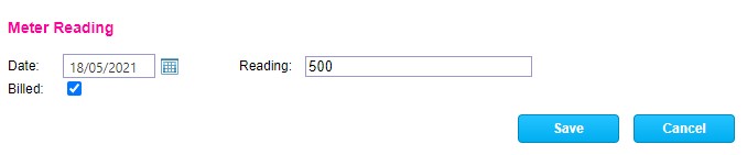 The system will now load in on the meters page the last reading value with the space to add the latest reading value: