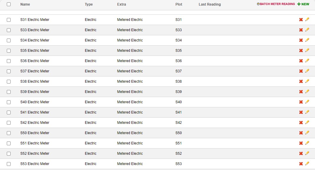 The first step is to make sure the first meter readings have been entered. Without the first reading there is no data point for the system to compare the prices and so the meter read of the units cannot be calculated. For the first time use, the meter reading page will look like this: