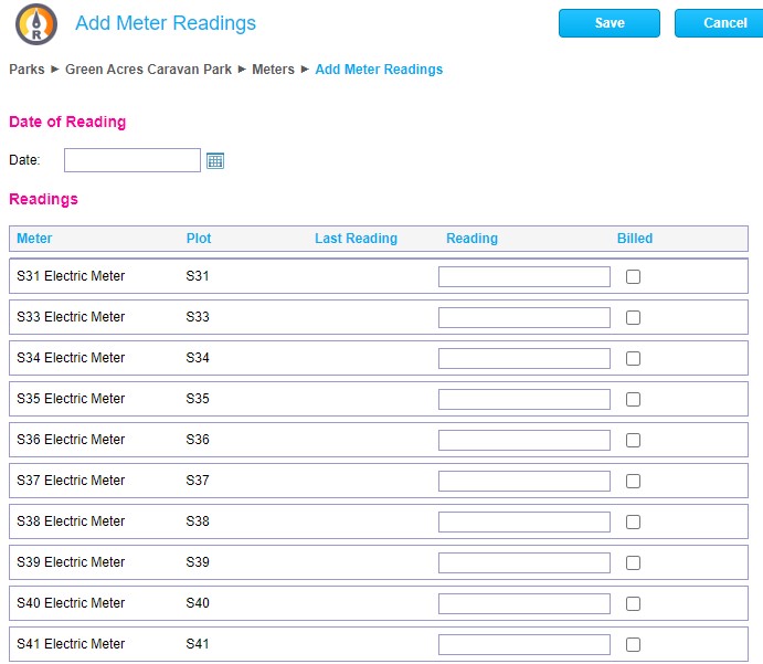 Once all meters have been submitted click save and you will now see the meters page with the last reading date showing.