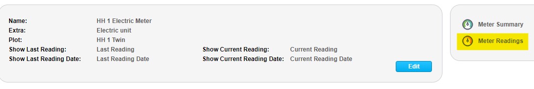 You might need to check the meter readings added against the meters once complete. To do this use the yellow pencil against any of the meters and click edit. You will see the meter summary page and you can click meter readings.