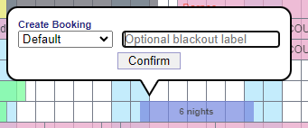 Find the unit to blackout. You can either click on the first day and drag along to cover the date(s) you want, or click on the first day and enter the number of nights on the bubble that appears. Then click blackout.