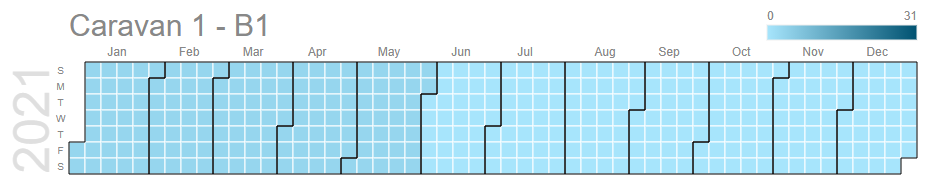 The above image is a good example of being careful when values are close together. In the examples this unit has a different min stay in Jan to May (3) than the rest of the year (0) but the colour difference is quite subtle. Again, you can hover the cells to confirm values.