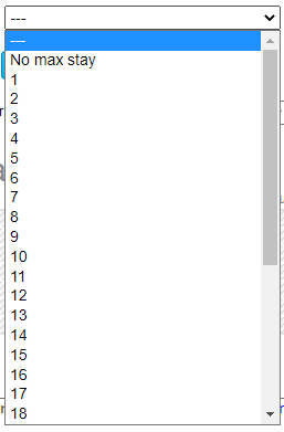 Max stay has a drop down of valid values. You must pick one.