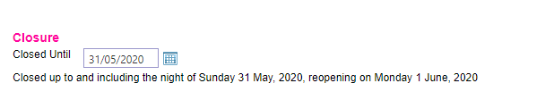 Under the Closure section, click the calendar icon to choose a Closed Until date.