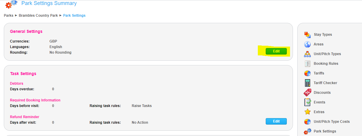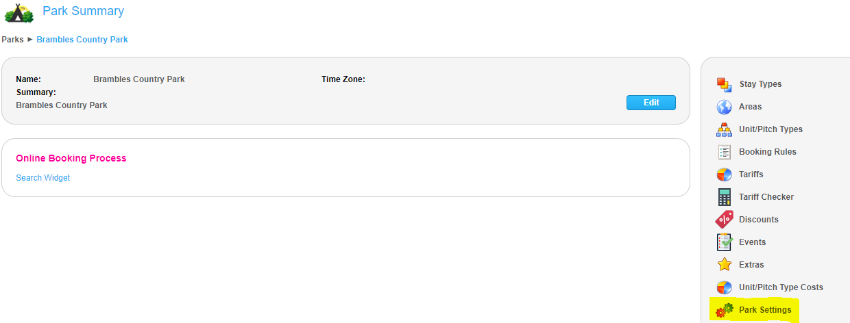 Navigate to Admin>(your park)>Park Settings