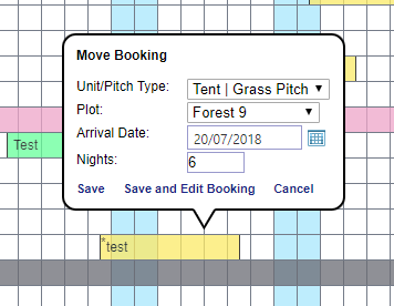 It is important to know, if you have a booking with a specific extra like dog, or have booked a caravan on the plot, the unit pitch types and plots list will only show available plots that specifically match these requirements. You will not be able to move a caravan booking to a tent only pitch for example.