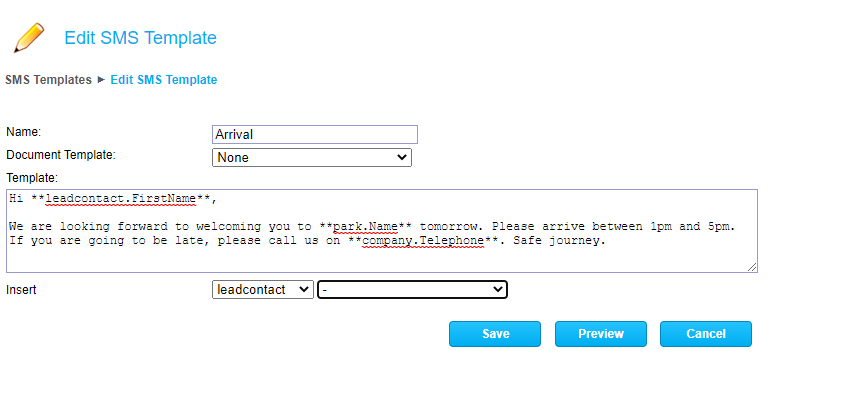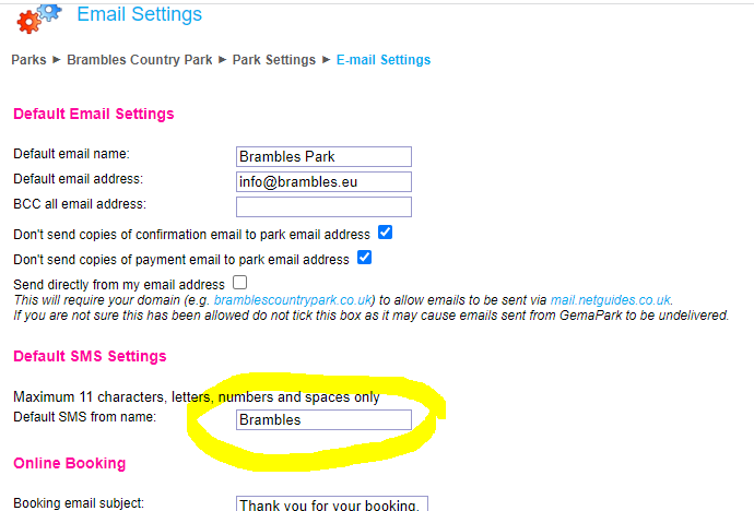 This is the name your SMS will show as being from and is set in ‘Email / SMS Settings’ under Park Settings which can be found under Admin > [park name].