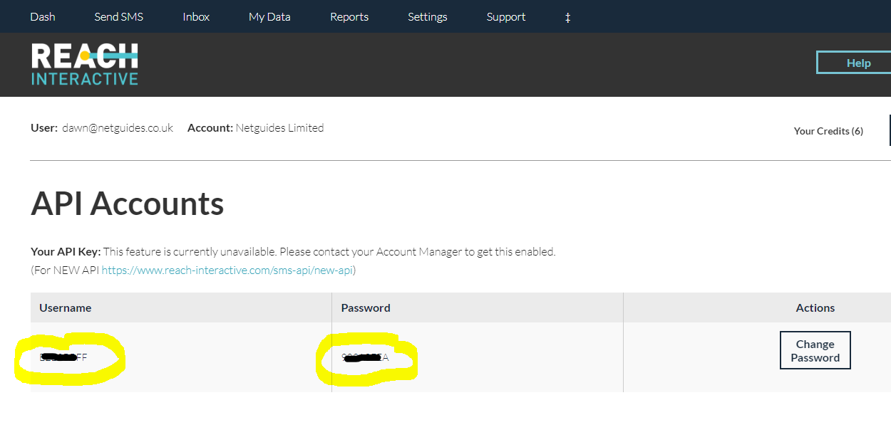 Copy the username and password shown on the above page into the ‘Reach Interactive’ section of the ‘Edit company details’ page in GemaPark. This can be found under Admin > Company Settings, click the blue ‘Edit’ button and it’s about half way down the page.